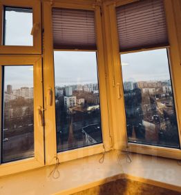 Санузел совмещенный, есть одна лоджия для отдыха и хранения вещей, с нее открывается роскошный вид на город и закаты.