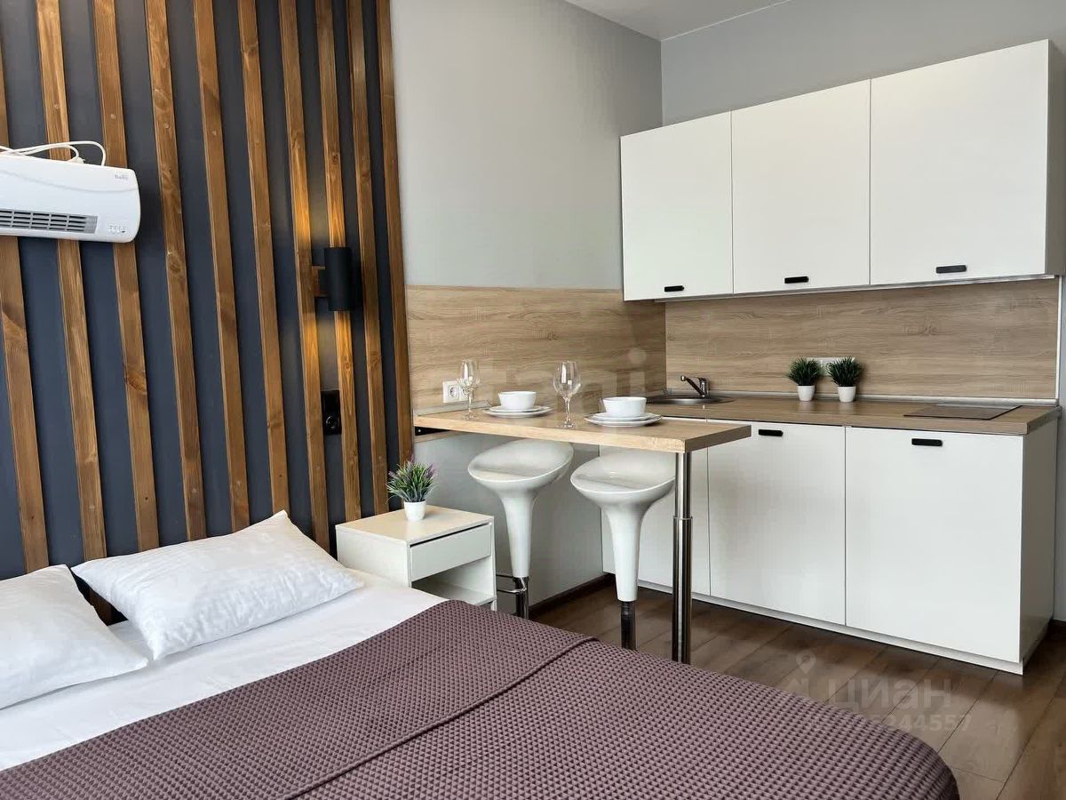 Студия полностью оснащена всей необходимой мебелью, бытовой техникой, текстилем.