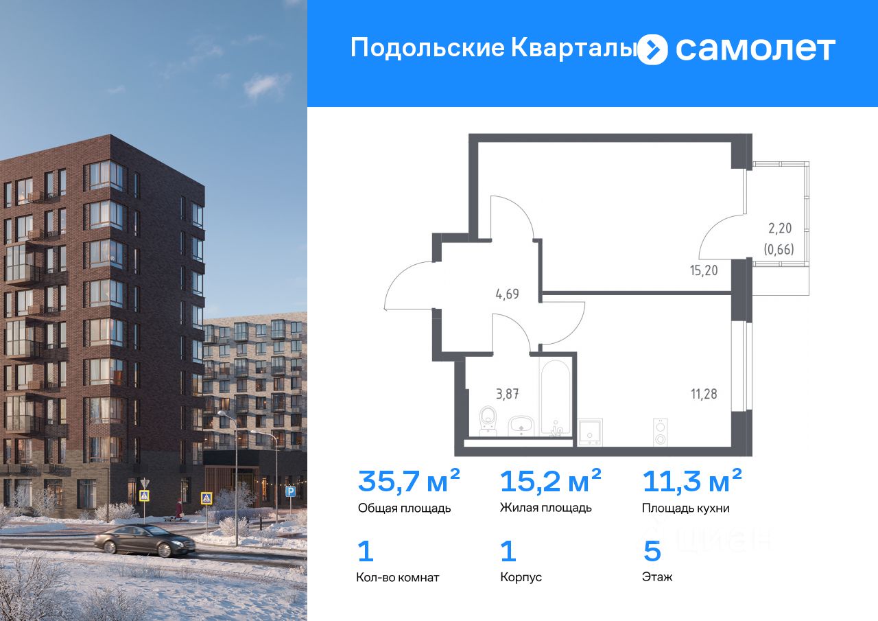 Строим кварталы для жизни с заботой о будущем. Предлагается 1-комнатная квартира комфорт-класса 35,7 кв.м в корпусе 1 на 5 этаже, в ЖК "Подольские Кварталы"