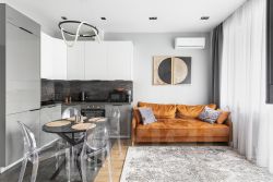 Ремонт выполнен в современном стиле. Каждая деталь про комфорт и эстетику. Апартамент укомплектован современной мебелью, декором и качественной бытовой техникой, полностью готов к проживанию. Все, что Вы видите на фото входит в стоимость.