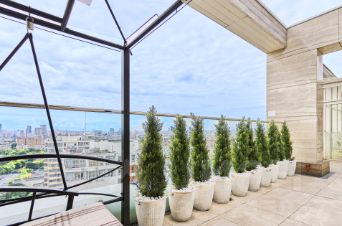 Пентхаус на 21, 22 и 23 этажах, формат 10-комнатного коттеджа, парящего над городом, где тишина и уединение — по-настоящему. Вокруг - простор и красивейшие виды на городской пейзаж, а над вами - только небо.
