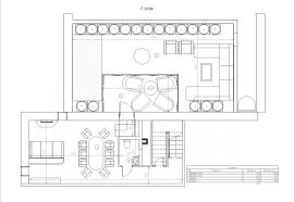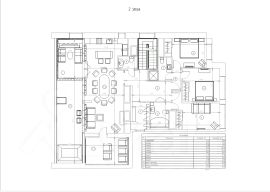 По лестнице, ведущей наверх, мы поднимаемся в гостиную 55 кв.м., которая включает в себя большую функциональную кухню, столовую и каминную зону. Отсюда ведет дверь в уютный кинозал с полной звукоизоляцией. Из гостиной мы также попадаем на крытую террасу с удобными креслами, где можно насладиться журчанием фонтана, и ощутить простор, перейдя на открытую часть террасы.