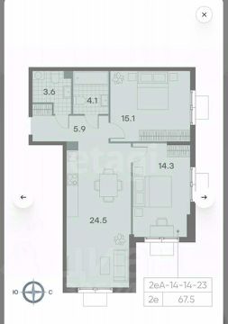 Самая востребованная планировка на рынке: евро трешка 67,5 м2