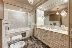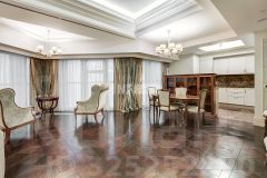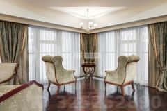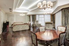 Апартамент меблирован, кухня оснащена встроенной техникой. Интерьер выполнен в сдержанном современном стиле, отделка из натуральных материалов, ремонт обновлён год назад.