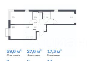 Предлагается 2-комнатная квартира комфорт-класса 59,6 кв.м в корпусе 4 на 5 этаже, в ЖК "Квартал Марьино" в самой востребованной планировке-распашонка