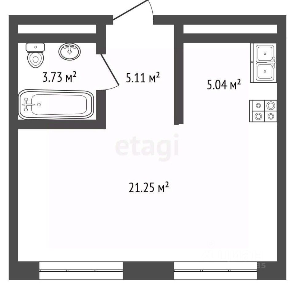 Общая площадь: 35,5 м²