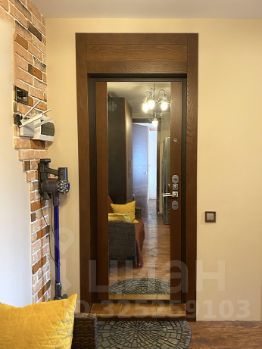 Межкомнатные двери увеличенной высоты и магнитными замками фабрики Волховец Planum 0010 в цвете Дуб коньяк + входная дверь этого производителя с зеркалом.