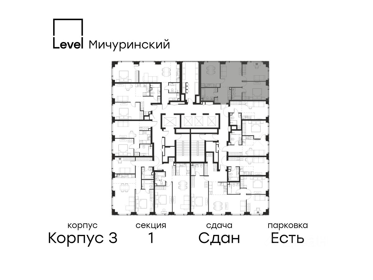 В жилом квартале, расположенном на границе с природным заказником "Долина реки Очаковки", продаётся 3-комнатная квартира площадью 75.10 кв.м с отделкой white box. Квартира расположена на 3 этаже 30-этажного корпуса 3 в жилом комплексе бизнес-класса Level Мичуринский (компания Level Group/Левел групп).