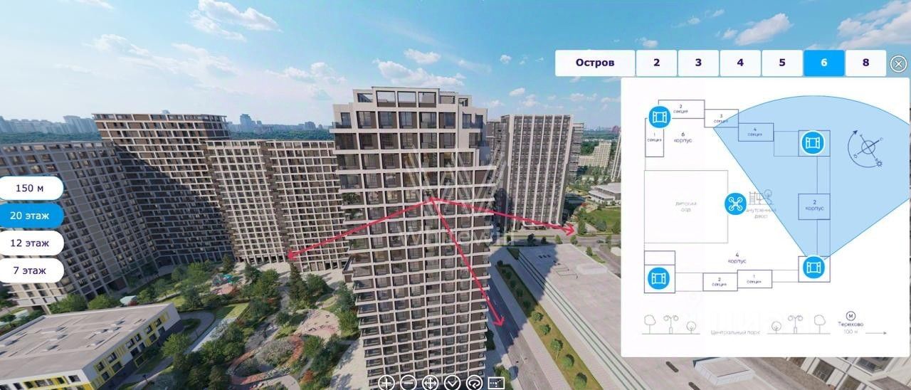 Главное о доме. "Остров" — квартал от "Донстроя" на 40 гектарах Мнёвниковской поймы. Здесь 39 корпусов переменной этажности, часть выходит на первую линию Москвы-реки. Панорамные окна открывают виды на Гребной канал и зелёные холмы Крылатского. Концепция all inclusive превращает комплекс в город внутри города: Центральный парк, набережные, кафе и рестораны, торговый центр, детские сады и школы. Дворы оформлены тематически: луговой, водный, ландшафтный с ручьём или с амфитеатром. В каждом — спортивные и детские площадки, тихие лаунж-зоны, 5G и зарядки для гаджетов.