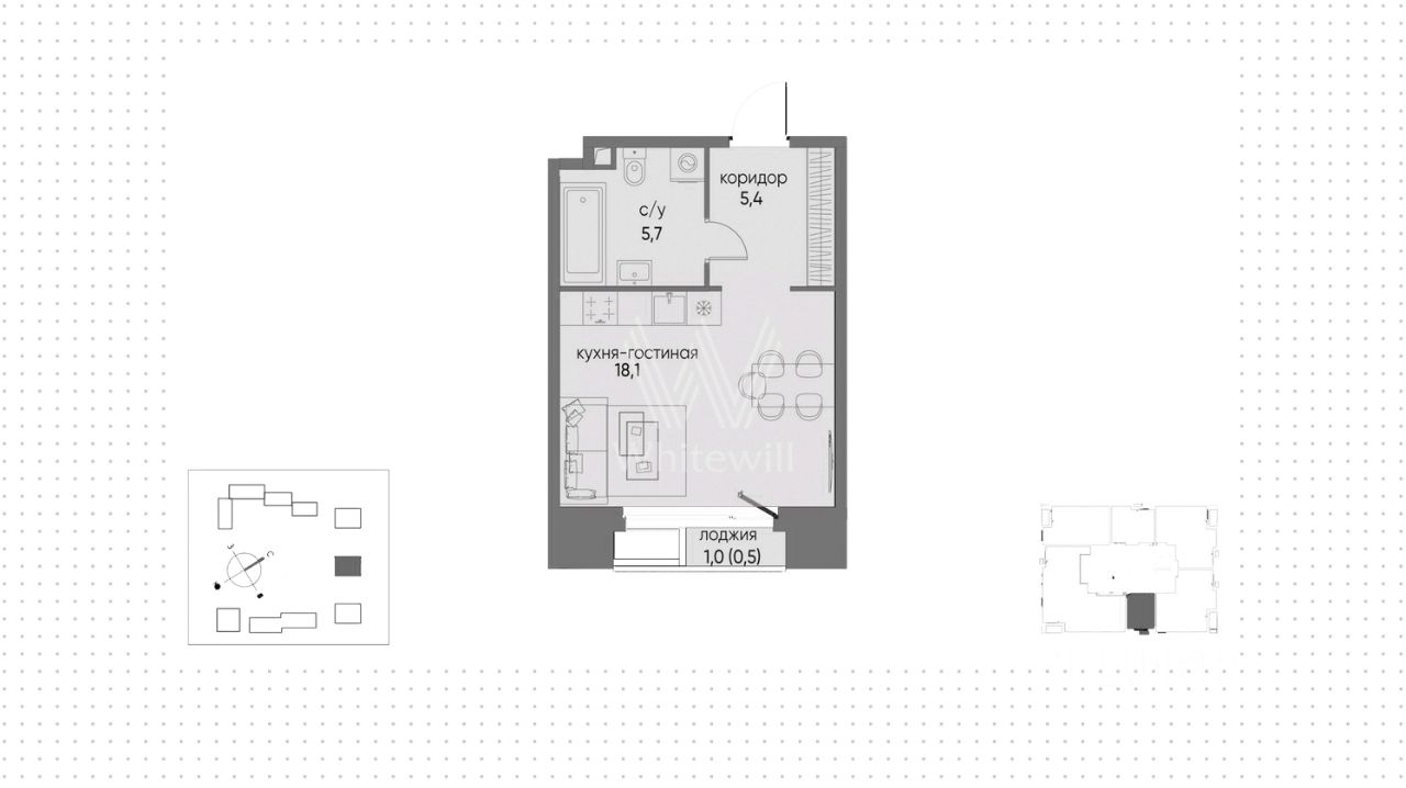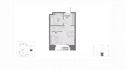 Студия площадью 30 м² в комплексе бизнес-класса "Остров-6". Студия без отделки расположена на 18 этаже в корпусе 2. Возможно спланировать зоны кухни-гостиной и спальни, ванную комнату, лоджию и прихожую. Открываются виды на город и территорию комплекса.