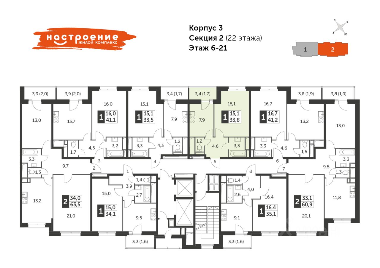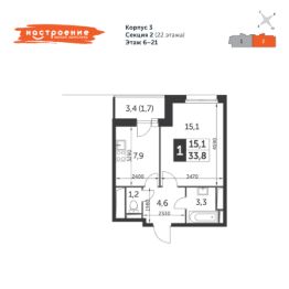 Продаётся 1-комнатная квартира в сданном доме (Красная Сосна, 3А (Корпус 3)), срок сдачи: IV-кв. 2021, общей площадью 33.8 кв.м., на 11 этаже. ЖК "НАСТРОЕНИЕ" строится ФСК Лидер на северо-востоке Москвы на границе Ярославского и Ростокинского районов, рядом с парком "Лосиный остров". Комплекс располагает быстрой транспортной доступностью от центра и основных деловых районов столицы.