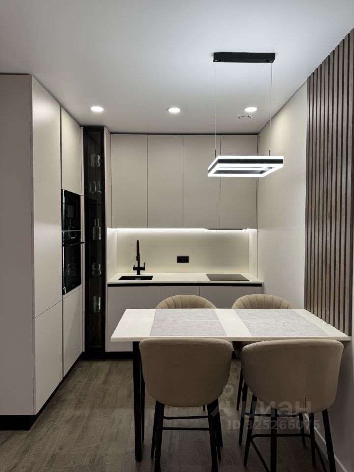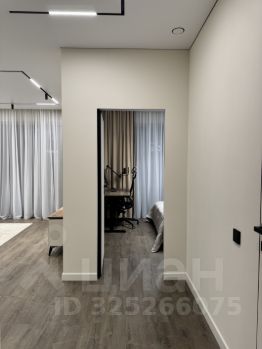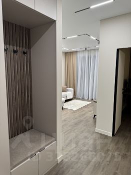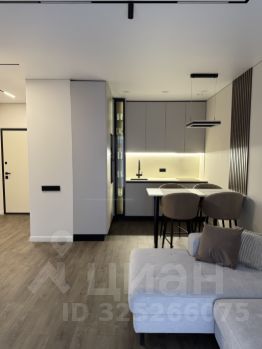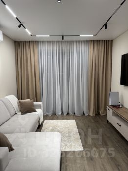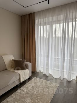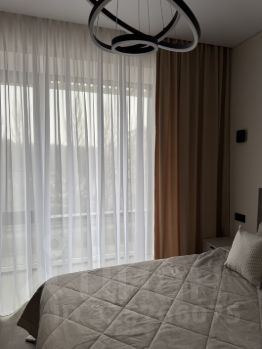 Планировка: кухня-гостиная, спальня и совмещённый санузел. В коридоре и в спальне большие встроенные шкафы, в зоне кухни современный стол-островок, разделяющий кухню и гостиную, потолки с теневым профилем, большие панорамные окна в пол дают много света и ощущение простора. Высота потолка 2,7 метра. Мебель и техника остаются новым собственникам.