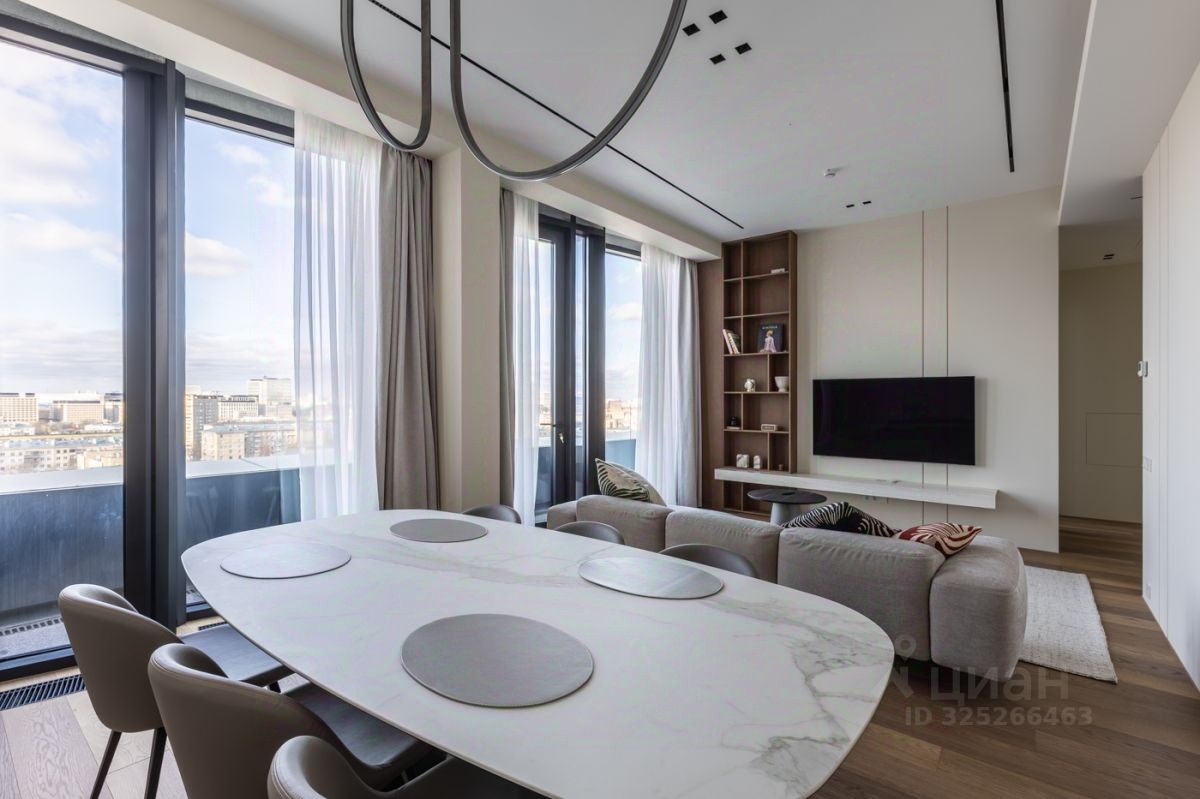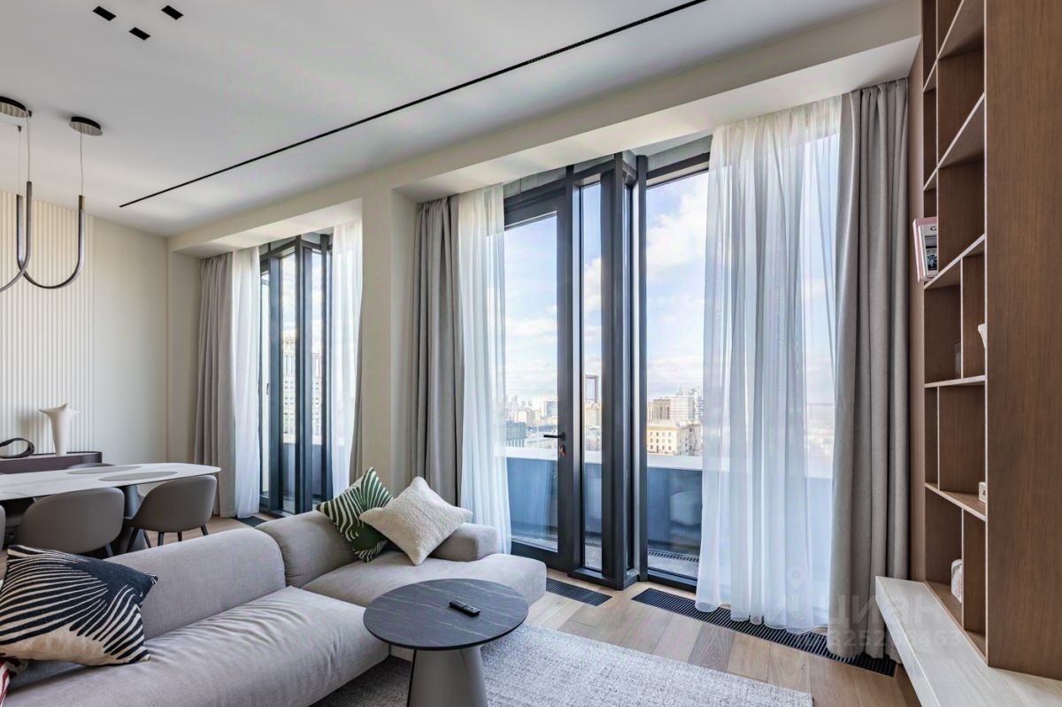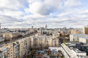 Эксклюзивный трехкомнатный пентхаус в жилом комплексе премиум-класса "SLAVA", из окон и террасы которого открываются захватывающие панорамные виды на динамичную Москву.