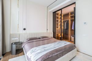 Планировка включает в себя прихожую с гостевым санузлом, просторную кухню-гостиную с обеденной зоной, мастер-спальню и дополнительную изолированную спальню. Системы хранения продуманы до мелочей: в каждой комнате и коридоре предусмотрены встроенные шкафы или гардеробные.
