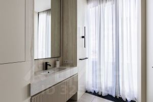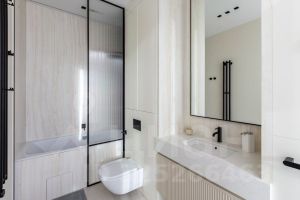 В отделке пентхауса использованы натуральные материалы премиум-класса, привезенные напрямую из Италии. Кухня оборудована современной встроенной техникой от ведущих европейских брендов NEFF и ASKO. Итальянская мебель и сантехника William Ross подчеркивают изысканный стиль и функциональность пространства.