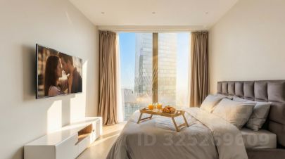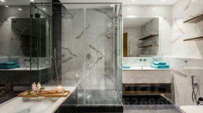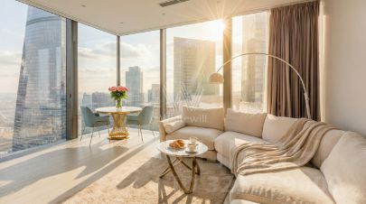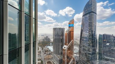 Видовые апартаменты с одной спальней общей площадью 88 м² в комплексе небоскрёбов премиум-класса Neva Towers. Апартаменты расположены на пятьдесят восьмом этаже, откуда открываются захватывающие виды на столицу. Выполнена отделка в светлом стиле, на полу паркетная доска, стены выровнены и окрашены. Вся техника производителя SMEG.