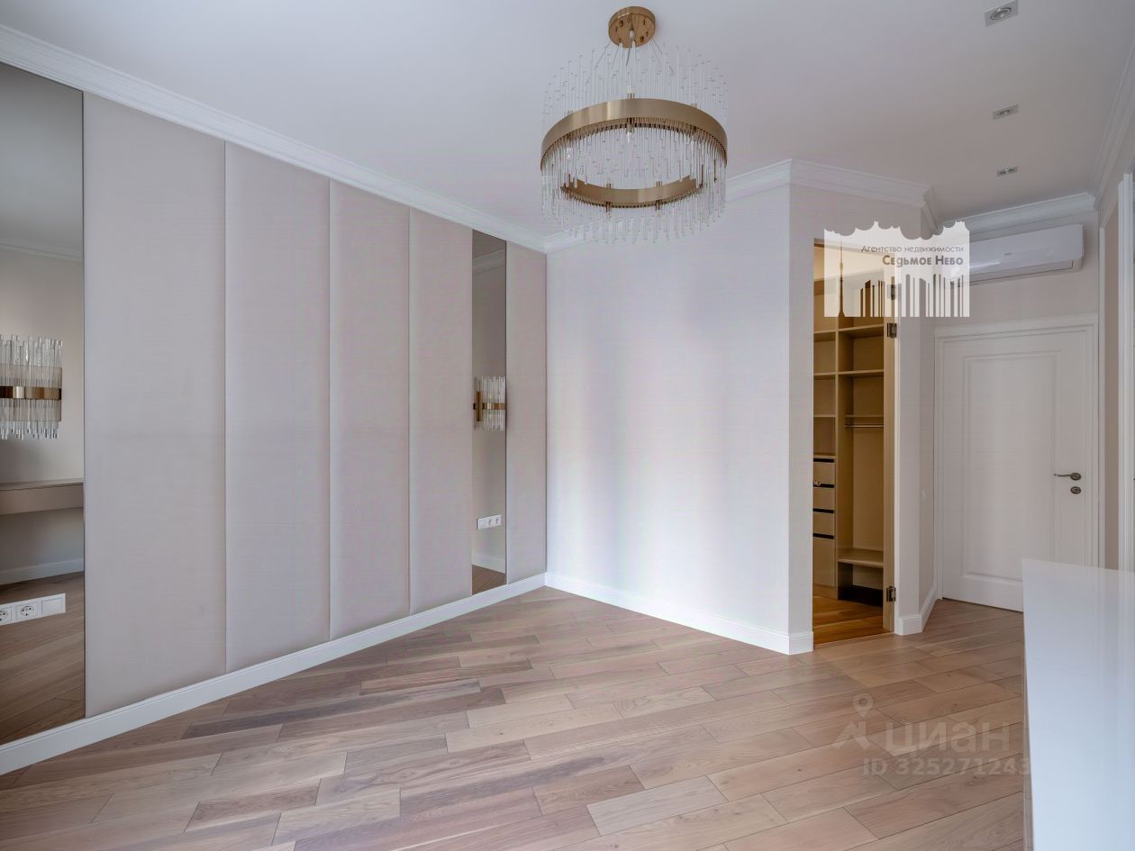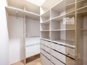 В мастер-спальне мягкие стеновые панели с зеркальными вставками и большим зеркалом (высота 3 метра), а также гардеробная с наполнением.
