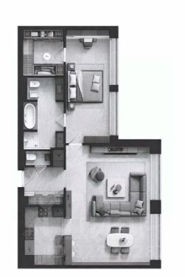 Площадь: 81,9 м2, кухня-гостиная и мастер-спальня с просторной ванной комнатой и гардеробной