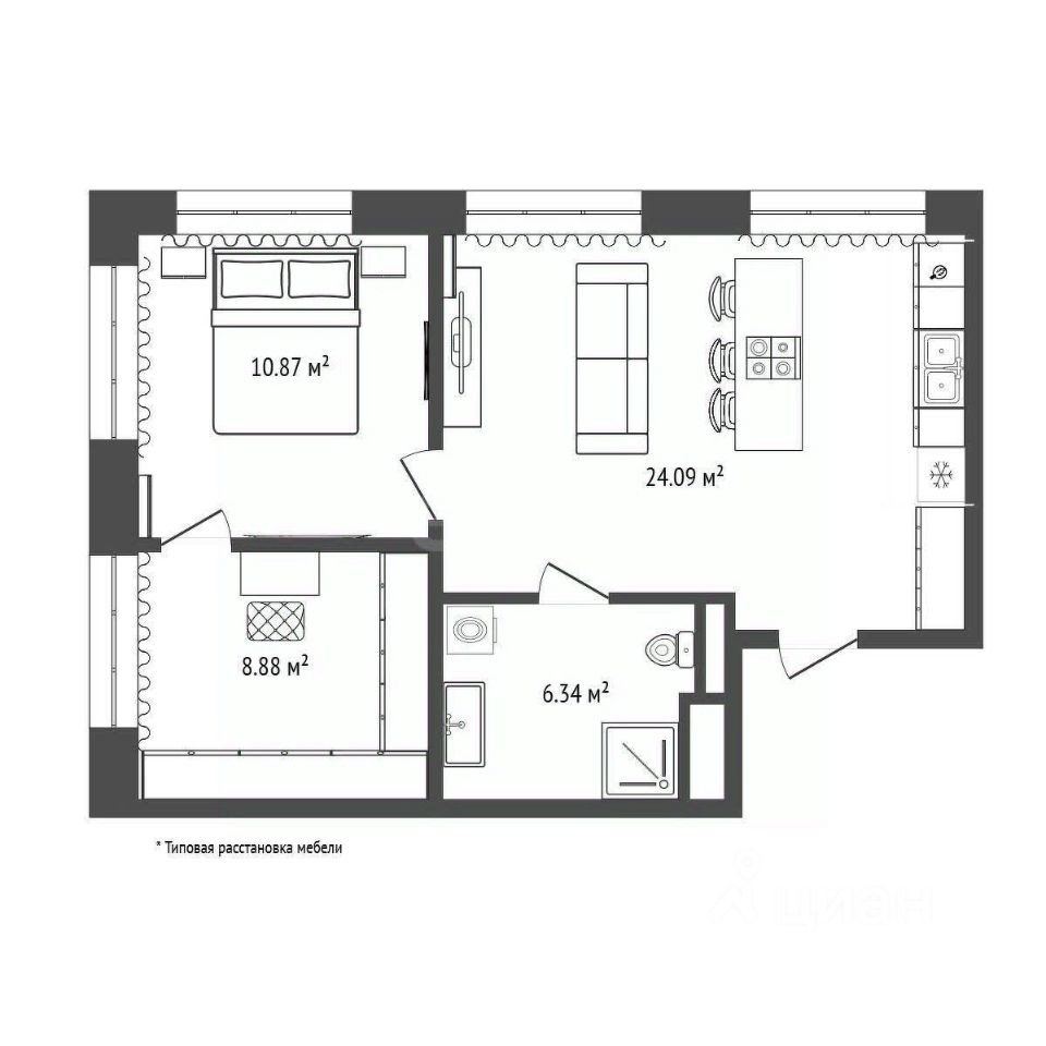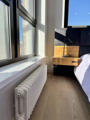 Планировка квартиры продумана до мелочей: просторная кухня площадью 24 м², уютная спальня 11 м², гардеробная 9 м² с окном и современный совмещенный санузел 6,3 м². Внутреннее оформление выполнено с любовью и вниманием к деталям: качественная отделка, вся мебель изготовлена на заказ, что придаёт помещению индивидуальность и стиль. В спальне вас встретит теплый паркет Finex премиум, а в остальных зонах — керамогранит с электрическим подогревом, который создаст атмосферу уюта даже в холодные дни. Кровать из Италии с нубуковым покрытием, плитка в ванной от Парселрноза Prada, входная дверь с системой "умный дом" и стеклянные розетки и выключатели европейского качества — все это делает квартиру поистине уникальной.