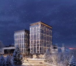 Комплекс состоит из двух 22-этажных башен: бизнес-центра и небоскреба с 277 апартаментами synergy-класса с видом на Долину реки Сетунь. Башни связывает шестиэтажная торговая галерея с собственным экопарком, смотровой площадкой и зонами для отдыха прямо на крыше.