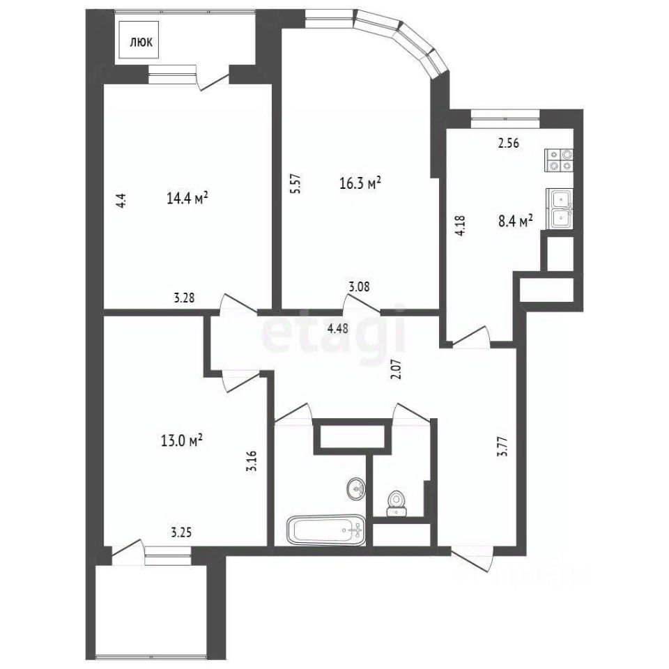 Квартира выполнена в стиле "евроремонт", что обеспечивает современный и комфортный интерьер. Просторная жилая площадь 43.7 кв. м, кухня 8.4 кв. м, где можно легко организовать как обеденные, так и рабочие зоны. Высота потолков 2.75 метра добавляет пространства и света. В квартире есть один совмещенный санузел и две лоджии, что позволяет наслаждаться видом как на улицу, так и во двор.