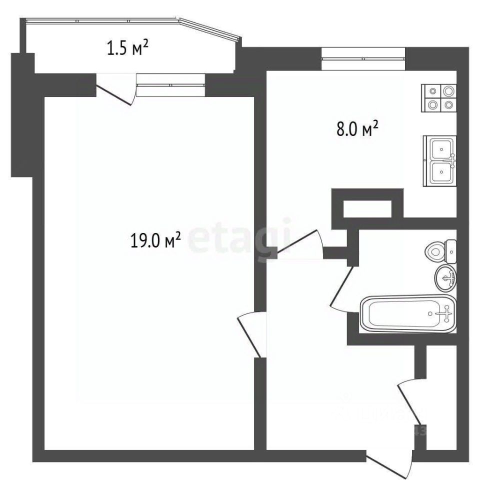 Планировка стандартная : прихожая со встроенным шкафом, совмещенный санузел, вместительная кухня и большая комната с выходом на лоджию. Косметический ремонт. Мебель вывезена. Кухонный гарнитур в квартире. Окна с видом на зеленый двор в сторону тихой улицы. Солнце в первой половине дня.