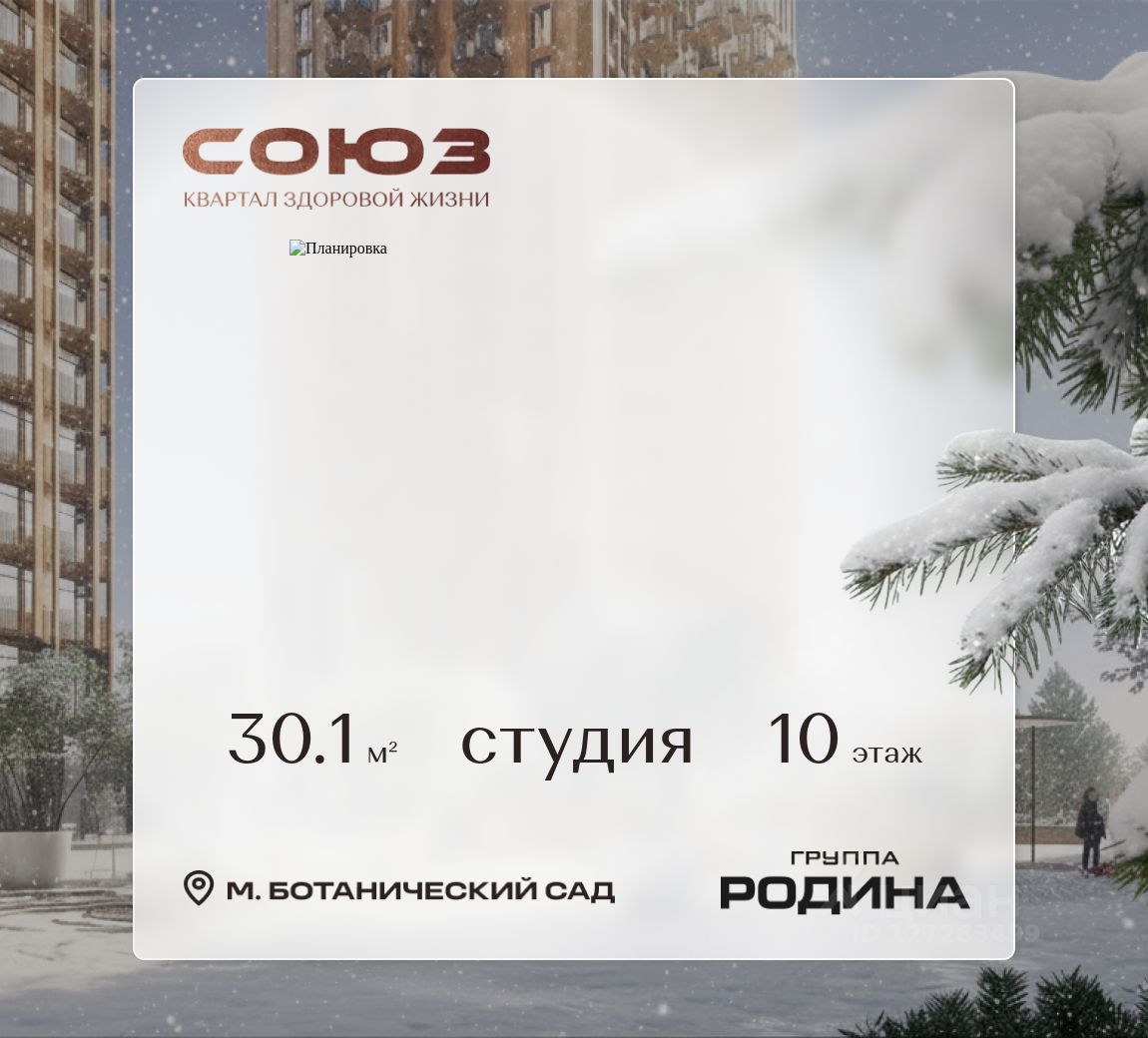Продаётся квартира-студия площадью 30.1 м² на 10 этаже в Жилом Комплексе "Союз".