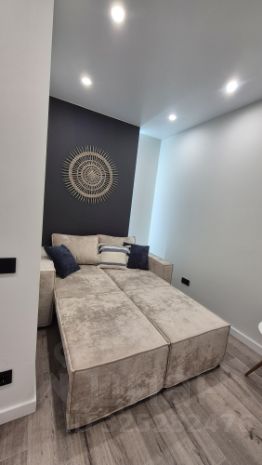 -Харизматичный зал 7 кв м. имеет оригинальную подсветку, придающей интимную обстановку, диван-трансформер, раскладывающийся частями для удобства отдыха.