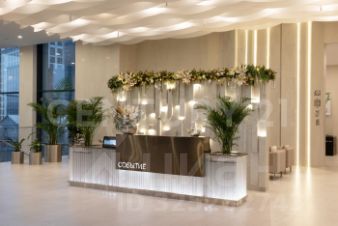 Двухуровневый атриум с витражным остеклением и стеклянной крышей поражает воображение. Потолки высотой более 6 метров, впечатляющая стена с водопадом создают неповторимую атмосферу.