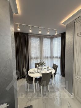 Техника Bosch (индукционная варочная поверхность, духовой шкаф, СВЧ, посудомоечная машина. Вытяжка скрытого монтажа, встроенный холодильник Samsung). Установлена система очистки воды , выведен кран с питьевой водой. Подсветка по всему периметру кухни-гостиной. В кухне-гостиной установлены два телевизора 43 один в обеденной зоне, второй в гостинной.