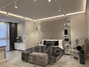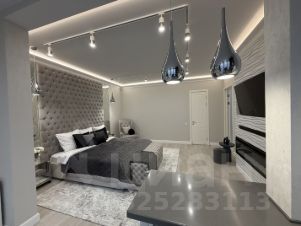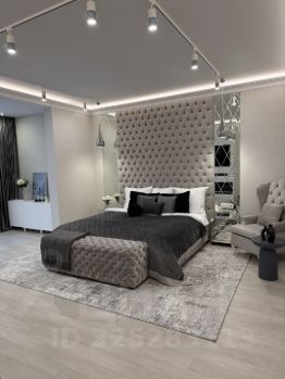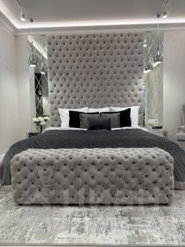 В квартире две спальни. Первая спальня площадью 30 кв.м. оформлена с учетом неповторимого стиля и комфорта, сделана шумоизоляция на смежной стене с соседями , по этой же стене расположена кровать размером king-size (матрас 2 x 2 м). Напротив, встроенная декоративная панель с ТВ 55, саундбаром и камином . В спальне также расположено рабочее место со столешницей из искусственного камня и панорамными окнами в пол.