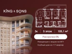 KING & SONS это клубный дом на 117 резиденций премиум-класса, расположенный на престижной и исторической улице Мосфильмовская. Из большинства квартир открываются панорамные виды на МГУ, "Москву-Сити", особняки посольств и парки. Это место для тех, кто не хочет выбирать между комфортом мегаполиса и уединением на природе.