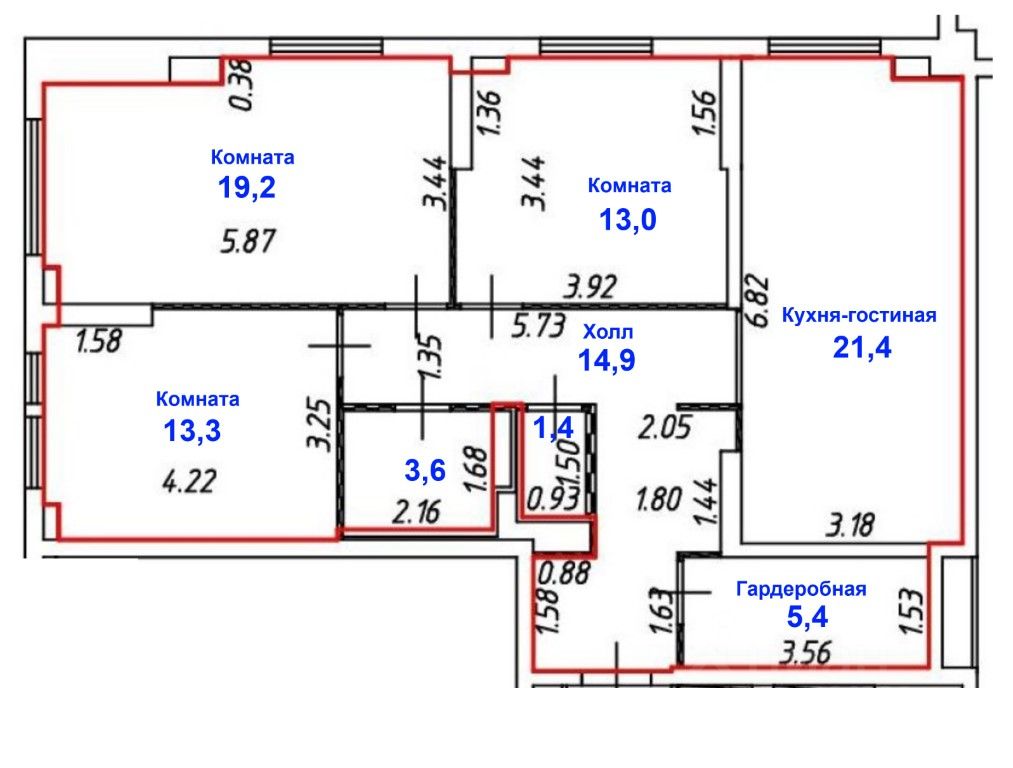 ЖК Михайловский парк. Москва, м. Окская, 5 мин. пешком, ул. Михайлова, д.30А, к.6, 10/33 этажного монолитного дома, 2023 года постройки. Общая площадь 92,2м2, жилая 45,5м2, кухня-гостиная 21,4м2, два санузла, гардеробная 5,4м2.