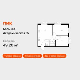 Продаётся 2-комн. квартира площадью 49,2 кв.м на 2 этаже 19 этажного дома (Корпус 1.2, Секция 1) проекта ПИК Большая Академическая 85. Светлый просторный подъезд на уровне земли, функциональная планировка, большие окна, c отделкой.