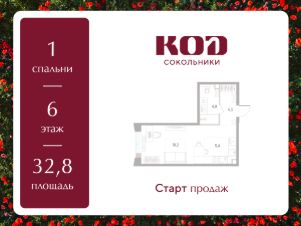 В семейном жилом квартале, расположенном в окружении более 500 га леса и объектов исторического наследия, продается квартира-студия площадью 32.80 кв. м без отделки. Квартира расположена на 6 этаже 12-этажного корпуса 2.1 жилого квартала бизнес-класса КОД Сокольники от девелопера Новая Эра.