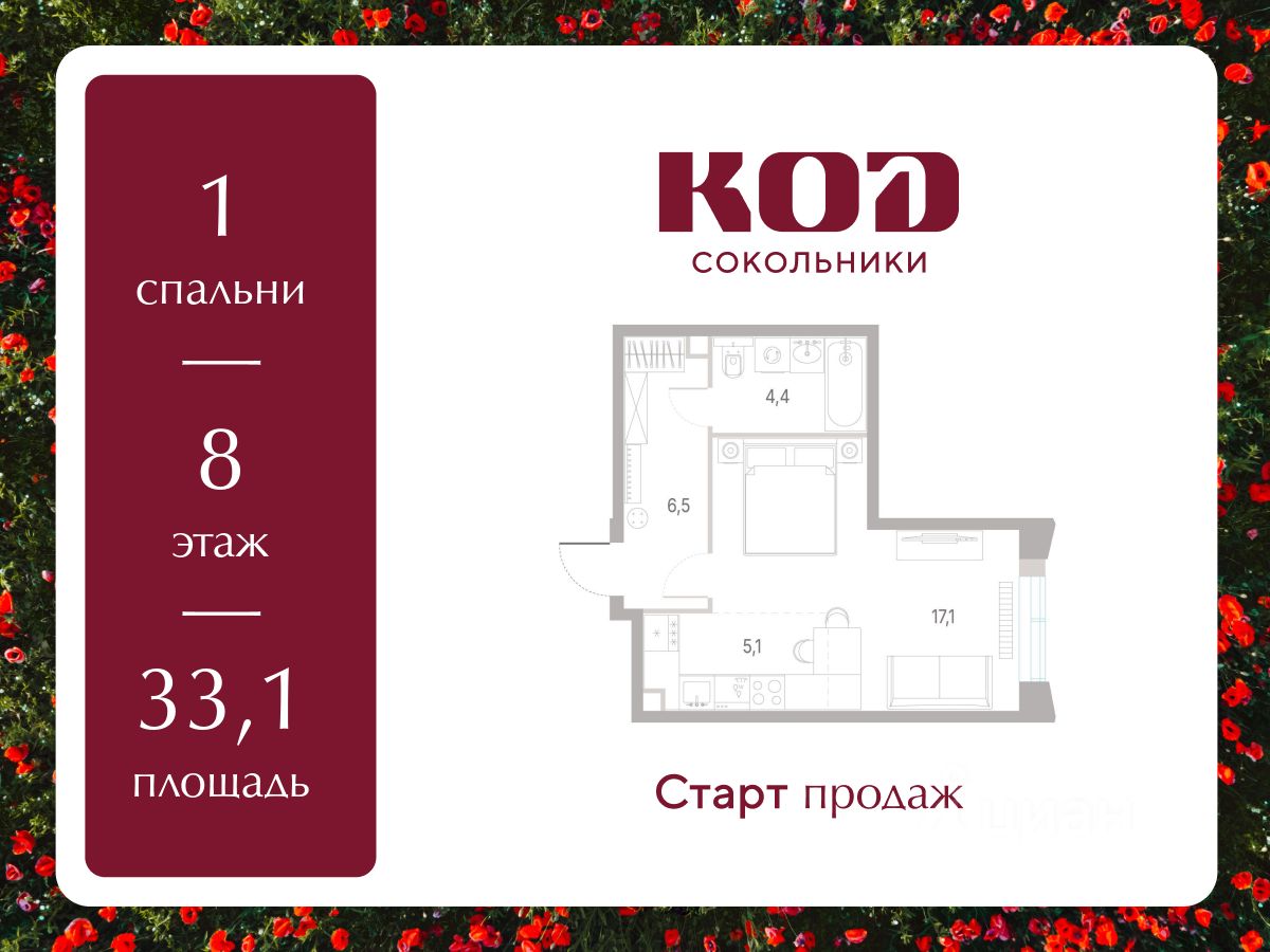 В семейном жилом квартале, расположенном в окружении более 500 га леса и объектов исторического наследия, продается квартира-студия площадью 33.10 кв. м без отделки. Квартира расположена на 8 этаже 12-этажного корпуса 2.1 жилого квартала бизнес-класса КОД Сокольники от девелопера Новая Эра.