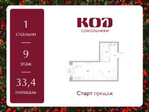 В семейном жилом квартале, расположенном в окружении более 500 га леса и объектов исторического наследия, продается квартира-студия площадью 33.40 кв. м без отделки. Квартира расположена на 9 этаже 12-этажного корпуса 2.1 жилого квартала бизнес-класса КОД Сокольники от девелопера Новая Эра.