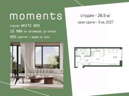 Продается студия номер 390 общей площадью 26.5 кв.м. на 3-м этаже 40 этажного дома, корпус 2.3. С отделкой White Box.