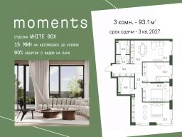 Продается 3-к. квартира номер 800 общей площадью 93.1 кв.м. на 34-м этаже 40 этажного дома, корпус 2.3. С отделкой White Box.