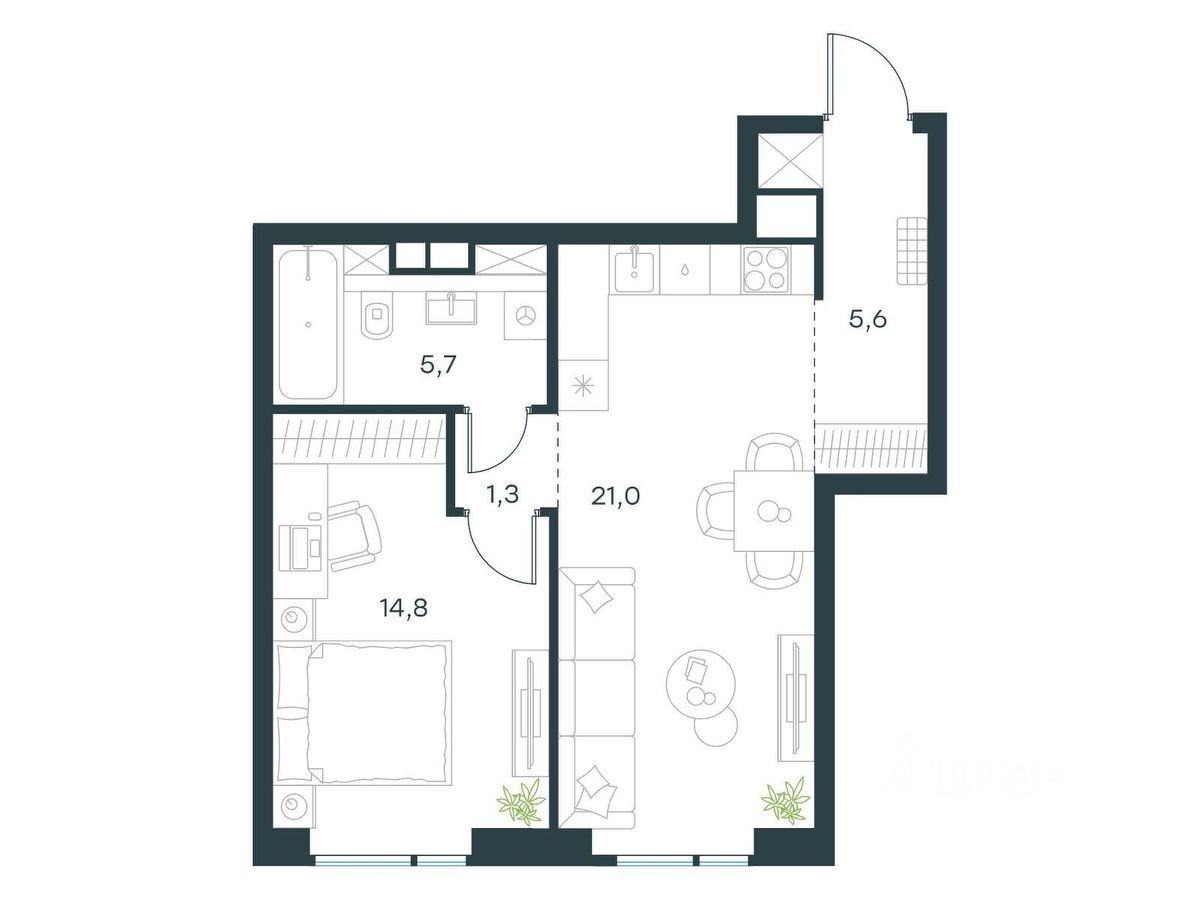 - более 20 видов планировочных решений, включая редкие форматы квартир с террасой и увеличенной высотой потолков до 5,42 метров;