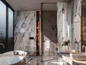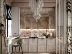 В подарок — полный дизайн-проект от известной студии: визуализации, планы отделки, схемы инженерных систем, расстановка мебели. По проекту: гостиная с люстрой из муранского стекла, кухня с мраморной столешницей и барной стойкой, мастер-спальня с двухспальной кроватью, удобная гардеробная, зона отдыха на балконе.