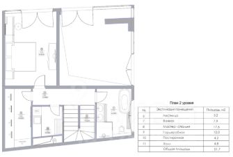 2-й уровень (51,7 м²) — мастер-спальня (17,6 м²) с гардеробной (12,0 м²) и ванной (7,9 м²) — уединённый оазис, где можно полностью отключиться от ритма мегаполиса.