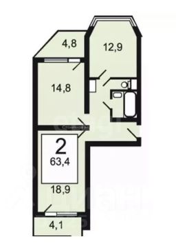 Общая площадь квартиры 63 кв. м. Две просторные комнаты, раздельный санузел, балкон и лоджия.