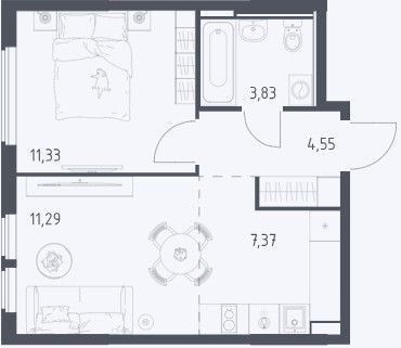 Площадь: 38,37 м².