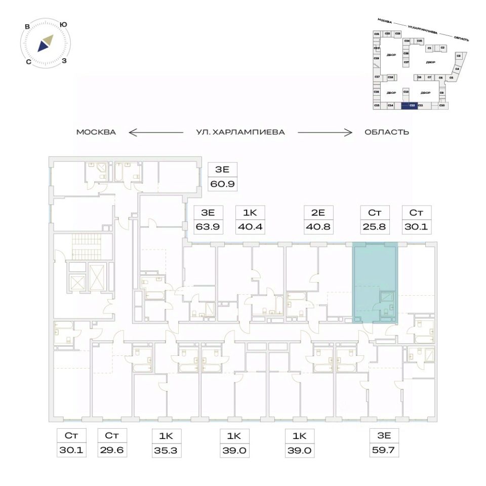 ЖК "Детали" | квартира-студия, 25.80 м², 10-й этаж.