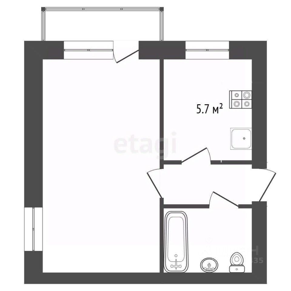 Площадь 31,7 кв. м., отличная планировка. За счет дополнительного окна есть возможность сделать две изолированные комнаты.
