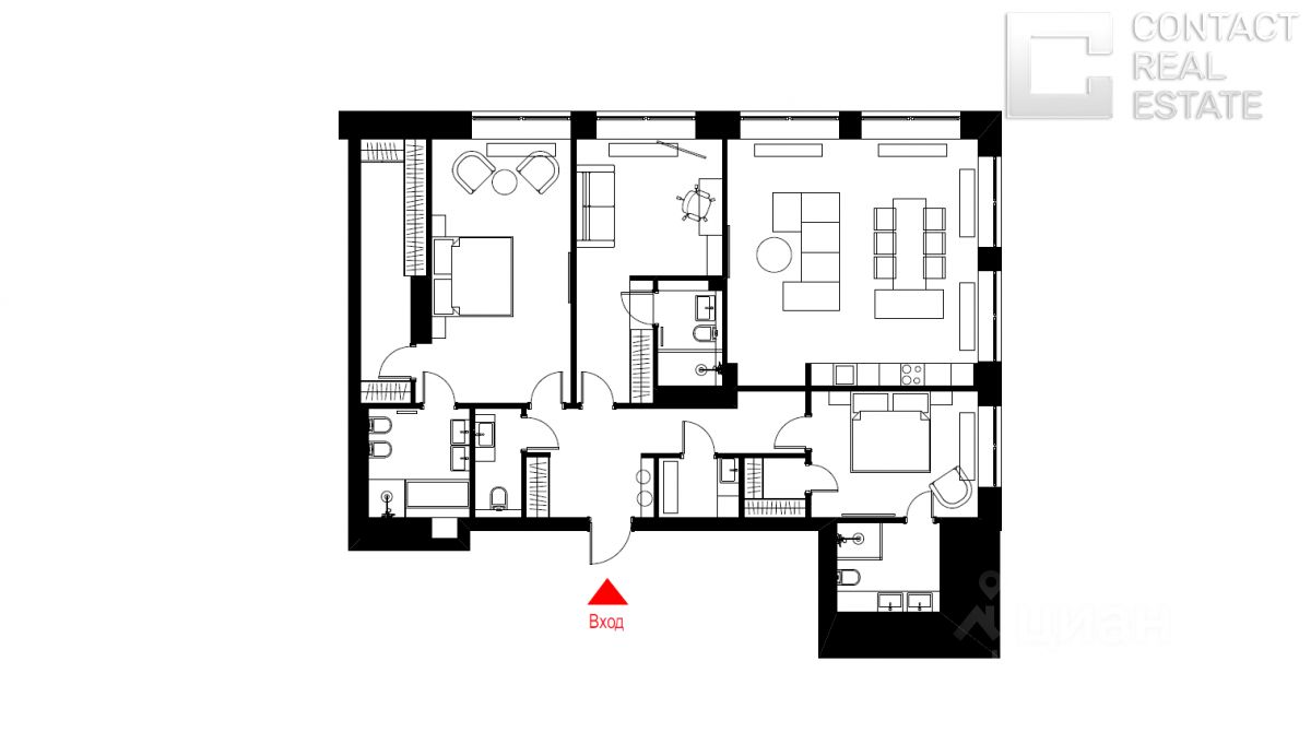 4-комнатная квартира площадью 163,5 м² в элитном ЖК в Гранатном переулке в центре Москвы.