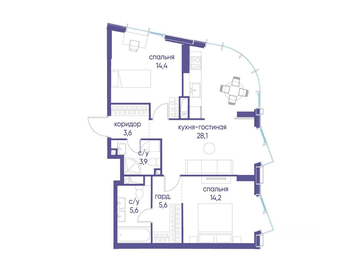 Продаётся 2-комнатная квартира от застройщика: общая площадь 75.40 м², жилая 28.60 м², кухня 28.10 м², 4-й этаж, жилой квартал "Событие-6", корпус 2 (секция 1) Срок сдачи: 1 квартал 2029 года.