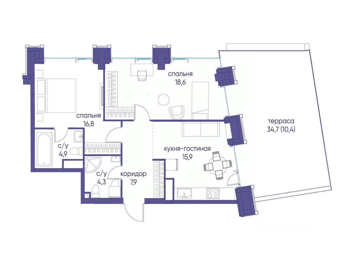 Продаётся 2-комнатная квартира от застройщика: общая площадь 78.80 м², жилая 35.40 м², кухня 15.90 м², 12-й этаж, жилой квартал "Событие-6", корпус 2 (секция 5) Срок сдачи: 1 квартал 2029 года.