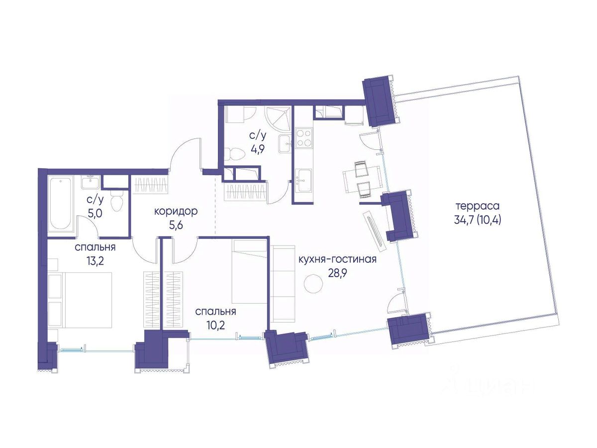 Продаётся 2-комнатная квартира от застройщика: общая площадь 78.20 м², жилая 23.40 м², кухня 28.90 м², 12-й этаж, жилой квартал "Событие-6", корпус 2 (секция 5) Срок сдачи: 1 квартал 2029 года.